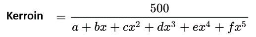 Wilks-kertoimen laskemiseen käytetään seuraavaa yhtälöä: