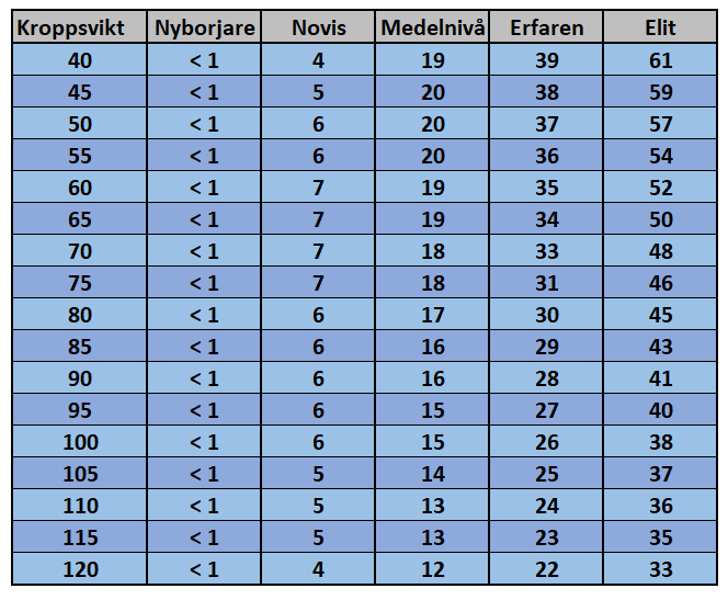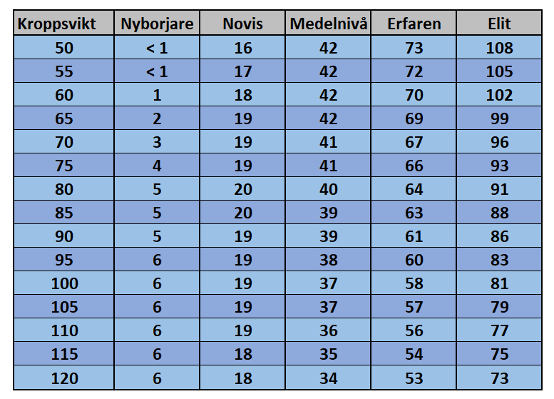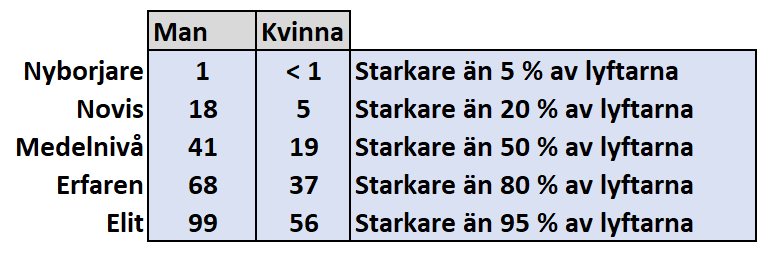 Du kanske också är intresserad av våra artiklar om bra bänkpressresultat, bra knäböjresultat, bra marklyftsresultat och bra chinsresultat.